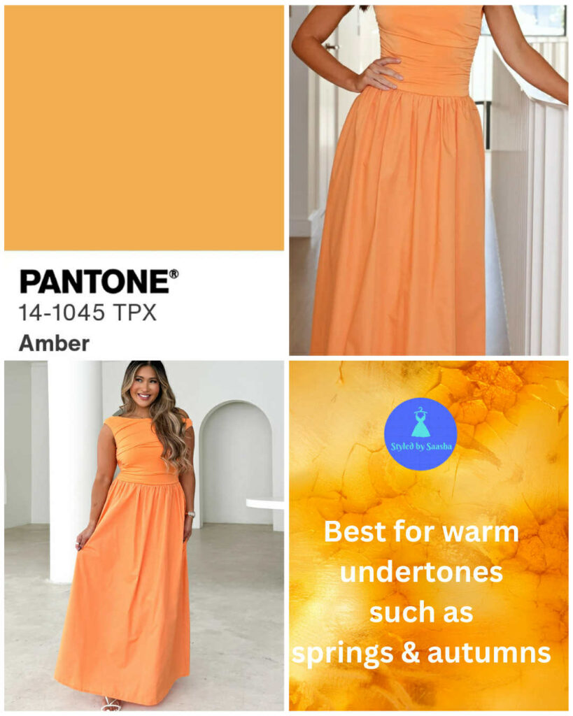 Amber will be big in 2025 because it radiates warmth, energy, and understated luxury—its golden, sun-kissed tones perfectly complement warmer weather, making it a stunning choice for adding depth to spring palettes and a cosy richness to your wardrobes.